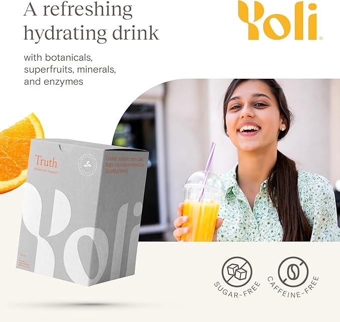 - Yoli Truth is a refreshing hydrating drink with botanicals, superfruits, minerals, and enzymes that support immune function and promote healthy antioxidant levels.