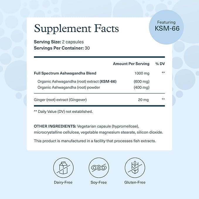 - Stress Supplement: This stress support formula is gluten free, dairy free, and soy free; two capsules daily provide 1,000 mg of high-quality ashwagandha blend*