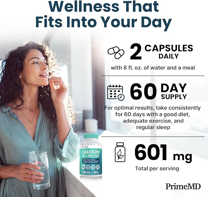 4-in-1 Calcium Supplements for Women and Men - Calcium with Vitamin D3 K2 5000 IU Supplement, 601mg per Serving - Gluten-Free, Vegan-Friendly (120 ct)