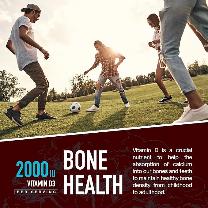 - BONE & TEETH HEALTH - D3 Vitamins play a crucial role in bone and tooth health by helping your bones and teeth absorb calcium to maintain strong density in adults of all ages. Vitamin D also plays a role in supporting muscle function.