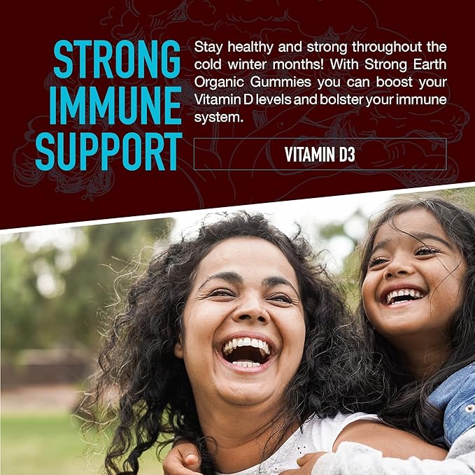 YUM-V'S Strong Earth Organic Vitamin D3 Gummies for Adults, (2000 iu Vitamin D 3 per Serving - 60 Count) for Bone & Immune Support, Vegan Chewable - Strawberry/Raspberry (60 Count)