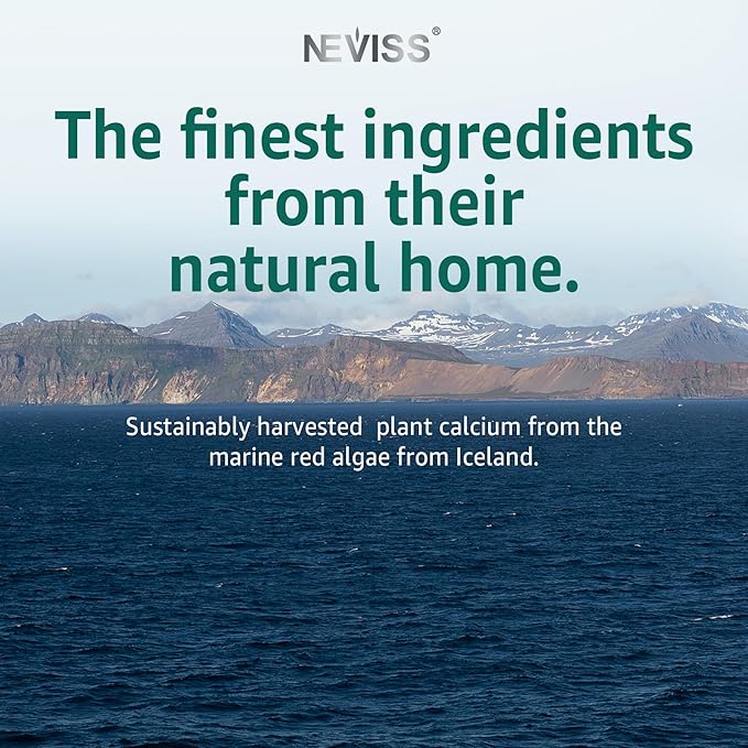 - Plant-Based Calcium from Ocean Algae: Sustainably harvested from the pristine seabed of the North Atlantic, Neviss’s red algae is naturally rich in calcium, magnesium, and over 72 essential trace minerals. Unlike rock-based calcium from limestone, our algae-sourced calcium offers a highly bioavailable and plant-based alternative. Fortified with Vitamin D3 K2 and C, our formula supports optimal bone mineralization and helps maintain strong, resilient bones at every stage of life.