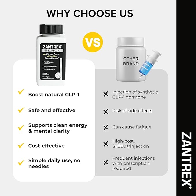 Zantrex Black – Naturally Boost GLP-1 & Metabolism Support | Thermogenic Energy, Weight Management Formula | 60 Pills