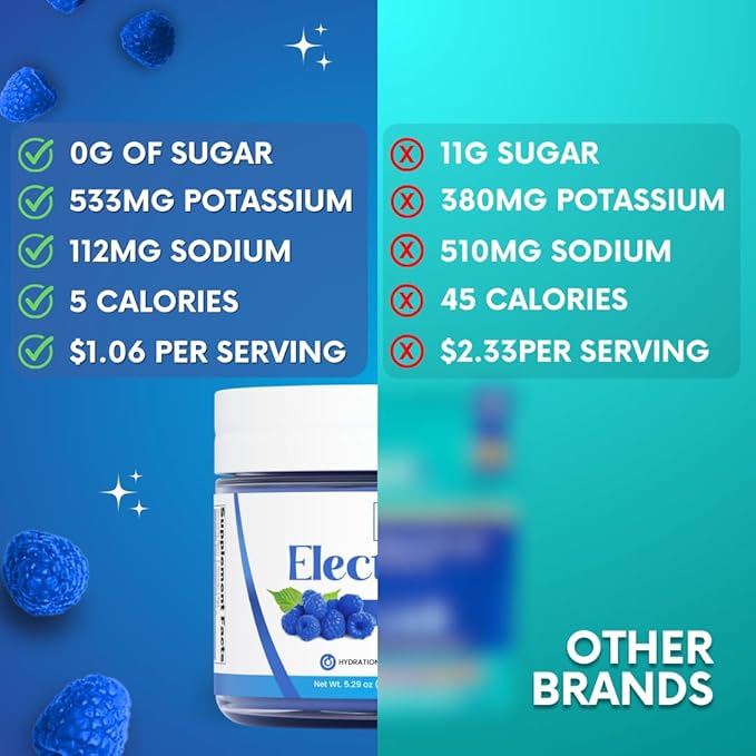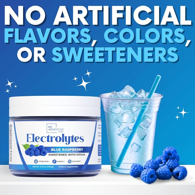 - Quench Your Thirst - Dive into the ultimate hydration experience with our Blue Raspberry Electrolytes Powder. Perfectly crafted to replenish your body, this electrolytes powder no sugar formula ensures every sip is filled with the goodness of electrolytes, making it your go-to hydration partner. Whether you're tackling intense workouts or just need a refreshing drink, our blue raspberry electrolytes deliver on taste and hydration.