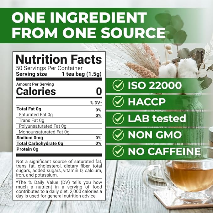 50 Bags Broadleaf Plantain Leaf Herb Tea (Plantago Majoris Folia) Plantain Leaves Tea - 50 Count 1.5 g Bags Llanten