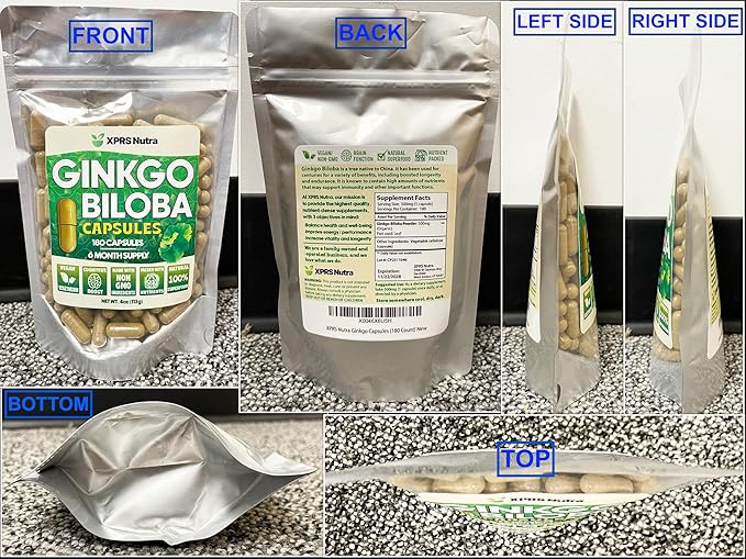 XPRS Nutra Ginkgo Biloba Capsules - Gingko Biloba Encapsulated Supplements for Cognition - Vegan Friendly Ginkoba Biloba - Immunity Boosting Ginkgo Biloba Capsules - 180 Count