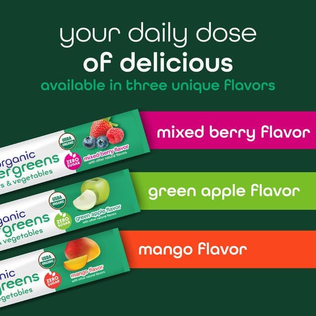 - Green Goodness On the Go: Our organic super green supplement comes in easy-to-tear stick packs so you can enjoy your daily greens supplement wherever you go. Bring the packs in your backpack, gym bag, purse, or even in a pocket