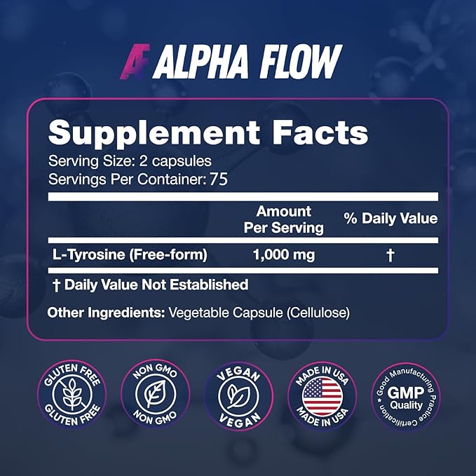 - Triumph with Alpha Flow: your success is our motto, that's why we strive to create the best Tirosina in our cGMP-certified US facility, with GMO-Free & Preservative Free formula surpassing L Tyrosine gummies & L Tyrosine powder