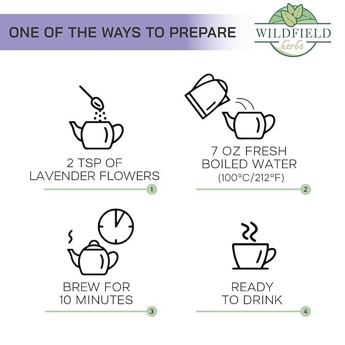 - 4 oz of Dried Lavender Flowers Herbal Tea. These Lavender Flowers have been grown, carefully harvested, specially dried and specially packaged to ensure that they reach the customer in the freshest and most fragrant condition.