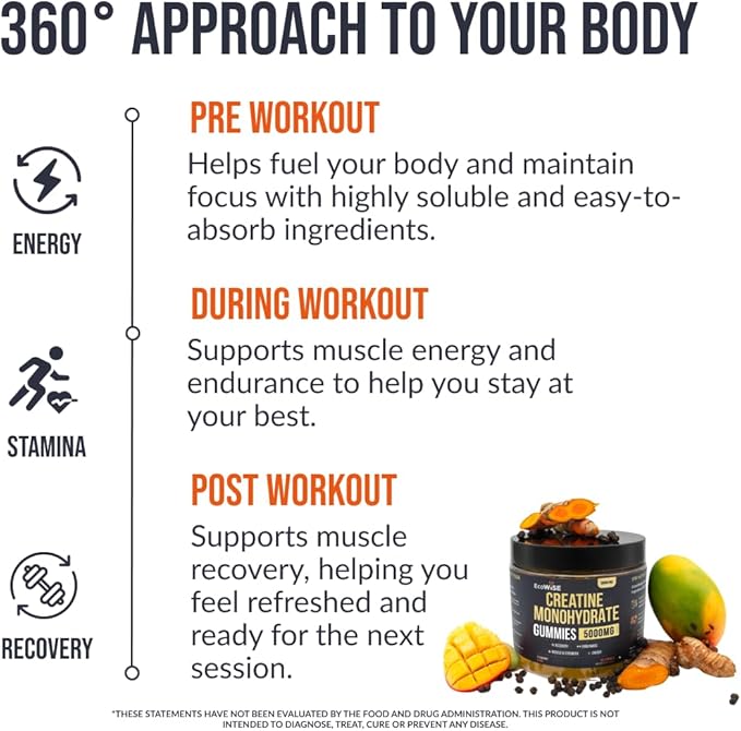- HIGH-STRENGTH FORMULA – Delivers 5000 mg of creatine monohydrate per serving, packed into convenient, chewable gummies for daily use.