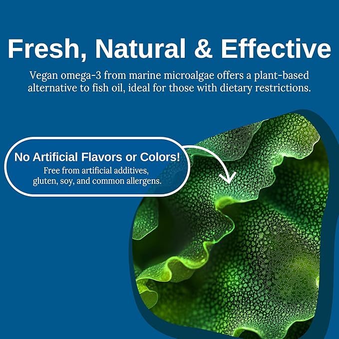 - PREMIUM QUALITY: Safe, fresh, and sustainable. Our Vegan Omega 3 is sustainably sourced from marine algae and independently tested by accredited laboratories