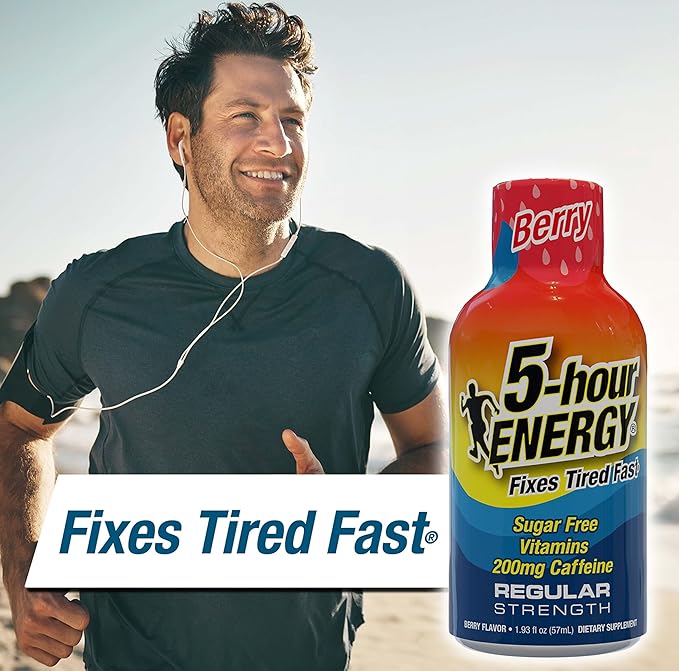 5-hour ENERGY Regular Strength Energy Shot 1.93oz, 20-Pack – Sugar Free Caffeine Energy Booster with B-Vitamins & Amino Acids – Zero Calorie (20 Bottles – Single Flavor, Berry Regular Strength)