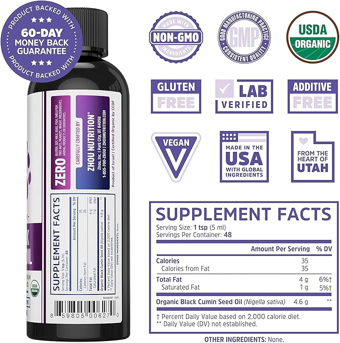 - 100% PURE ORGANIC BLACKSEED OIL - Our black cumin seed oil is packed with antioxidants, omega 3 6 9, and thymoquinone to support healthy cell activity in the body and keep your immune system strong