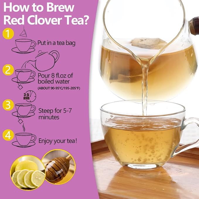 - 【Aromatic & Soothing】- The Red clover tea bag has a unique herbal aroma of red clover and a soothing taste. Adding seasonings such as lemon or honey makes the taste even better.
