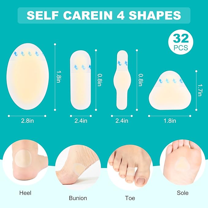 - 【Value Pack, Assorted Sizes】 Includes 32PCS hydrocolloid blister bandages in multiple shapes and sizes. Each piece individually wrapped for hygiene and travel convenience.