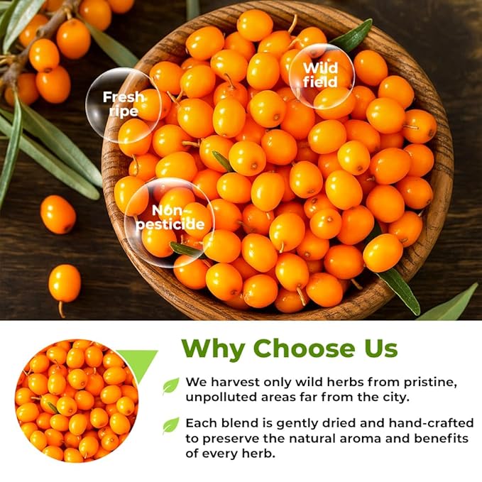 - Our Buckthorn, whole, processed under hygienic conditions. Pure, high quality Buckthorn with a strong aromatic effect. The packaging is hand-sealed and hermetically sealed to ensure freshness.